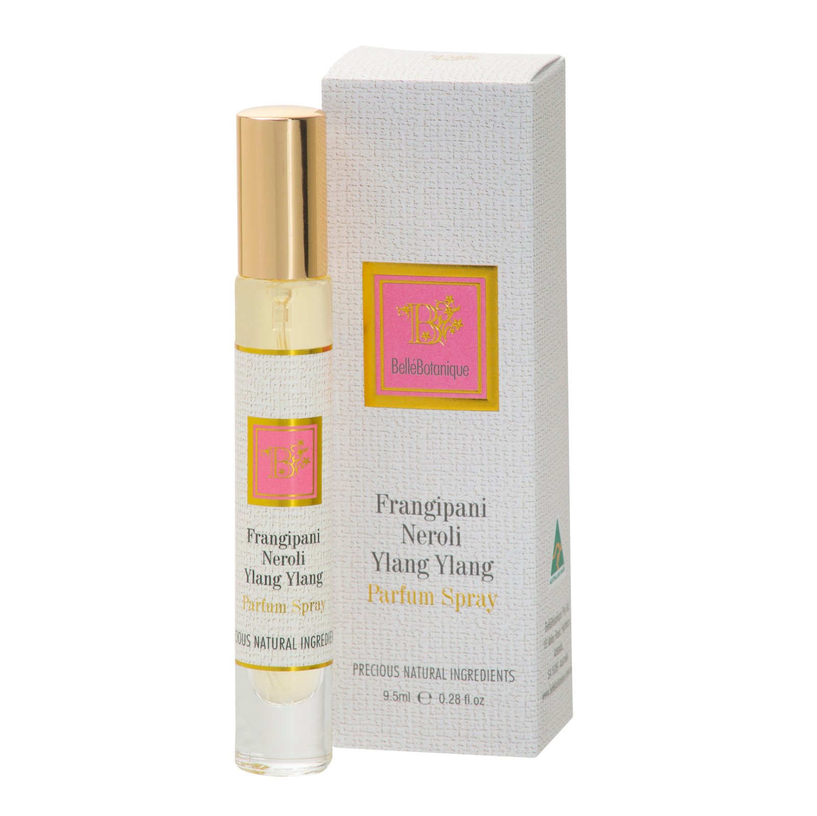 Alcohol (Grape Alcohol from Australian vineyards), Parfum (Natural), Citrus aurantium var. amara (Neroli) flower extract, Plumeria alba (Frangipani) extract, Cananga odorata (Ylang Ylang) flower extract, Limonene**, Linalool**, Citronellol**, Benzyl Benzoate**, Geraniol**, Benzyl Salicylate**, Citral**, Vanillin and Aqua.